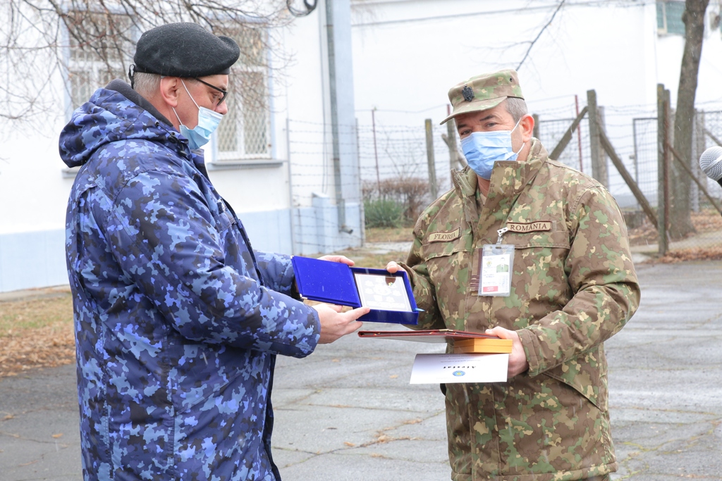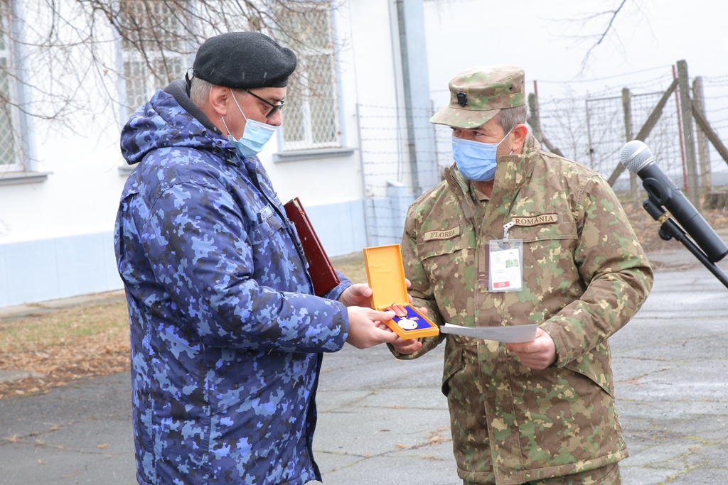 În cadrul ceremoniei, directorul adjunct al Statului Major al Apărării, comandorul Iosif Bencze a conferit colonelului dr. Petrișor Florea, Emblema de merit în Serviciul Armatei României, cls. I.