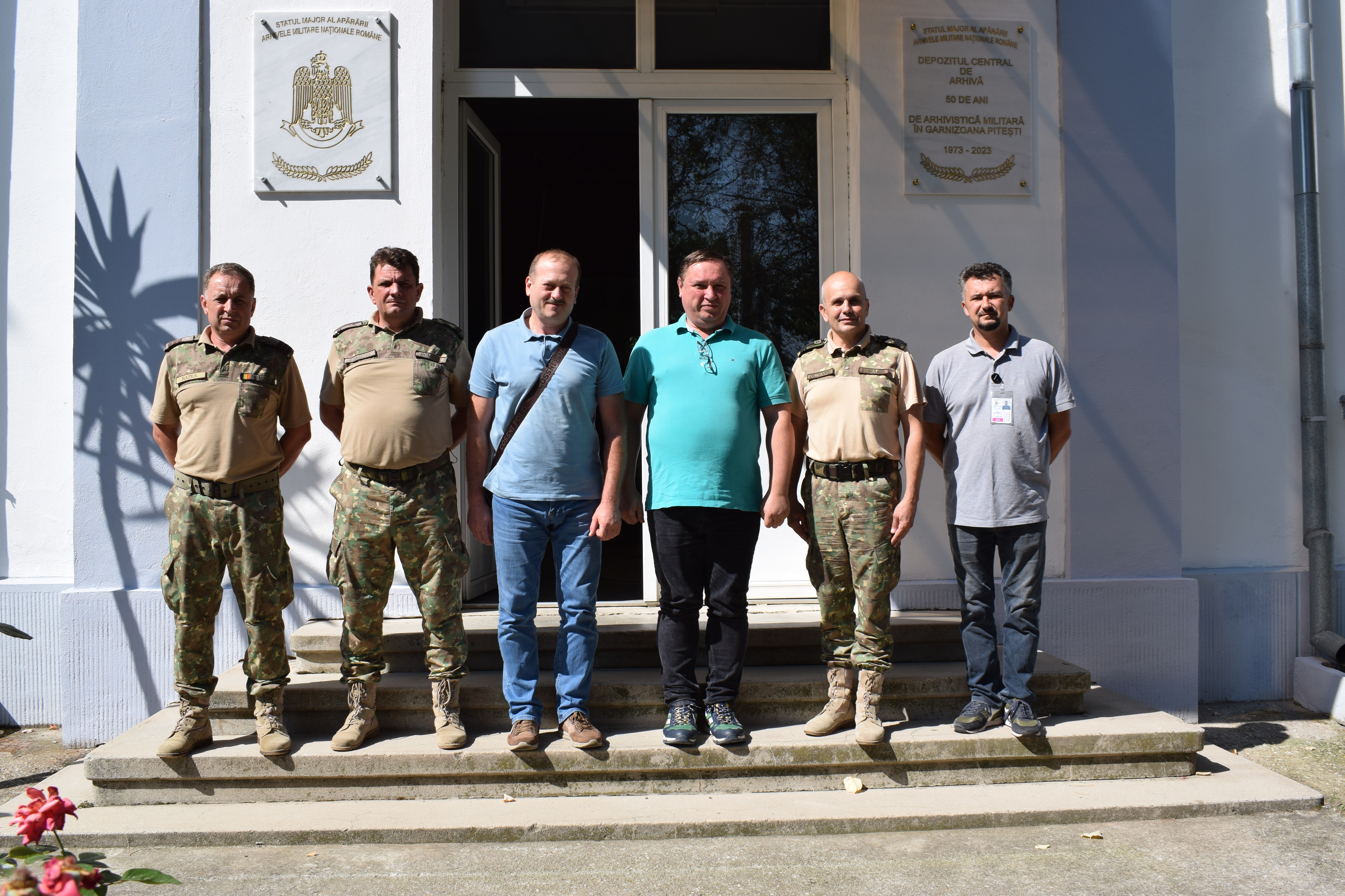 În perioada 17-24.08.2023, o delegaţie a Agenţiei Naţionale a Arhivelor din Republica Moldova, formată din dl. Caşu Igor, directorul instituţiei şi Lupaşcu Ion, şef-serviciu, au efectuat un stagiu de documentare la Depozitul central de arhivă cu tema Basarabeni participanţi la Al Doilea Război Mondial în Armata Română. În cadrul discuţiilor, comandantul Depozitului a oferit Agenţiei ultimele apariţii editoriale apărute sub egida unităţii noastre: „Monografia Depozitului central de arhivă – 1920-1947” şi „Armata română şi patrimoniul arhivistic naţional”.